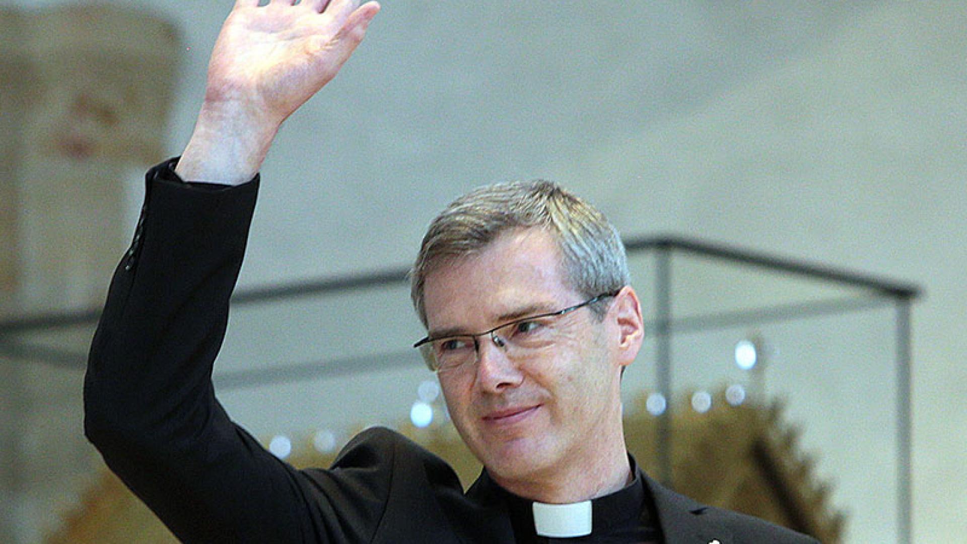 Als Pater Heiner Wilmer offiziell als neuer Bischof begrüßt wird und sich erstmals den Fragen der Presse stellt, hat er bereits zwei Nächte in Hildesheim hinter sich. Sein erster Eindruck: Das Bistum bietet ein buntes Panorama und kann auf kreative Menschen bauen.