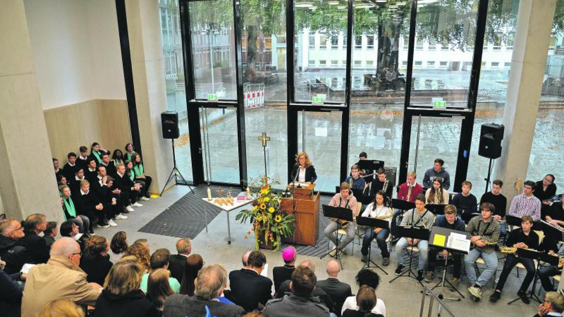 „Dieser barrierefreie Erweiterungsbau eröffnet der Sophie-Barat-Schule ganz neue pädagogische Möglichkeiten. Und mit der Schulkapelle setzen wir zudem ein deutliches Ausrufezeichen für eine persönlichkeitsstärkende Bildung auf der Grundlage des christlichen Menschenbildes“, erklärte die stellvertretende Schulleiterin Dr. Gabriele Roosen vor etwa 80 geladenen Gästen.