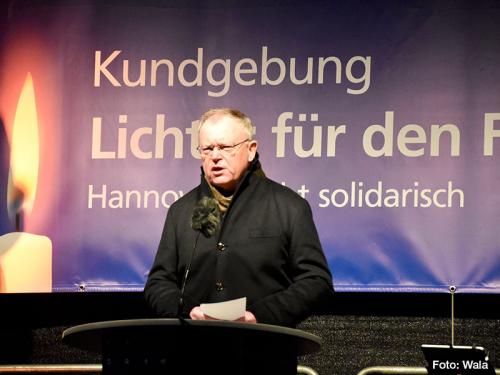 Diese Hoffnung kommt auch am Jahrestag des Angriffskrieges zur Sprache – bei einer Kundgebung, zu der der Deutsche Gewerkschaftsbund, der Freundeskreis Hannover, der evangelisch-lutherische Stadtkirchenverband und die Katholische Kirche in der Region Hannover aufgerufen haben. Der Leitgedanke: „Lichter für den Frieden“. Rund 1000 Menschen, darunter viele aus der Ukraine, versammeln sich vor dem Trammplatz vor dem Rathaus der Landeshauptstadt.