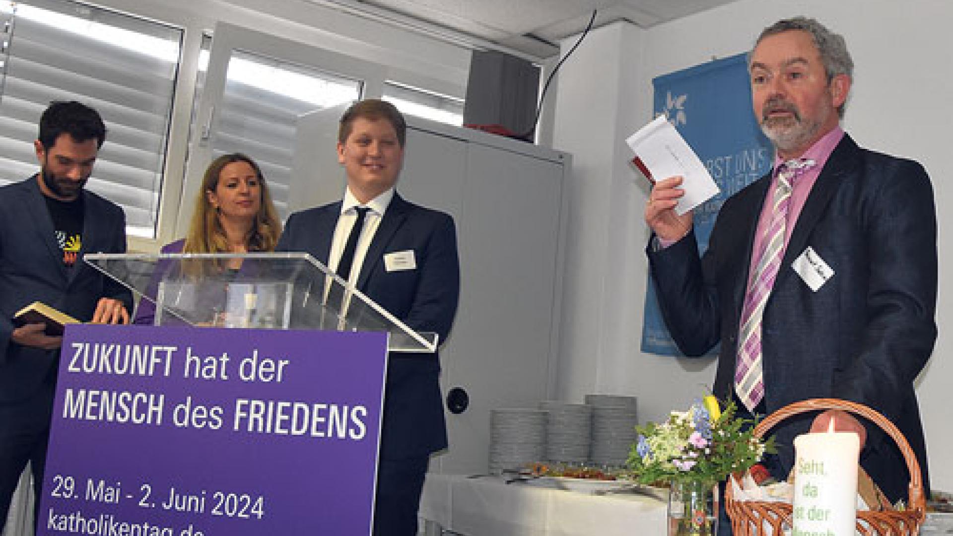 Die Katholiken- und Diözesanräte der fünf ostdeutschen Bistümer planen, sich gemeinsam mit einer Podiumsdiskussion oder einem anderen Gesprächsformat am Katholikentag zu beteiligen. Klar ist bisher allerdings nur, dass es thematisch um den spezifischen Beitrag gehen soll, den Christen als Minderheit für Demokratie und gesellschaftlichen Zusammenhalt leisten können, sagt der Berliner DiözesanratsGeschäftsführer Marcel Hoyer. Inspiriert zu dieser Themenidee hat die Diözesanratsvorstände ein Vortrag mit dem Titel „Demokratie braucht Religion“, den der Thüringer Soziologe Hartmut Rosa im vergangenen Jahr hielt. Bis zum 17. April haben die Katholikenräte Zeit, ihre Programmidee auszufeilen. Dann läuft die Online-Bewerbungsfrist für thematische Programmvorschläge ab.