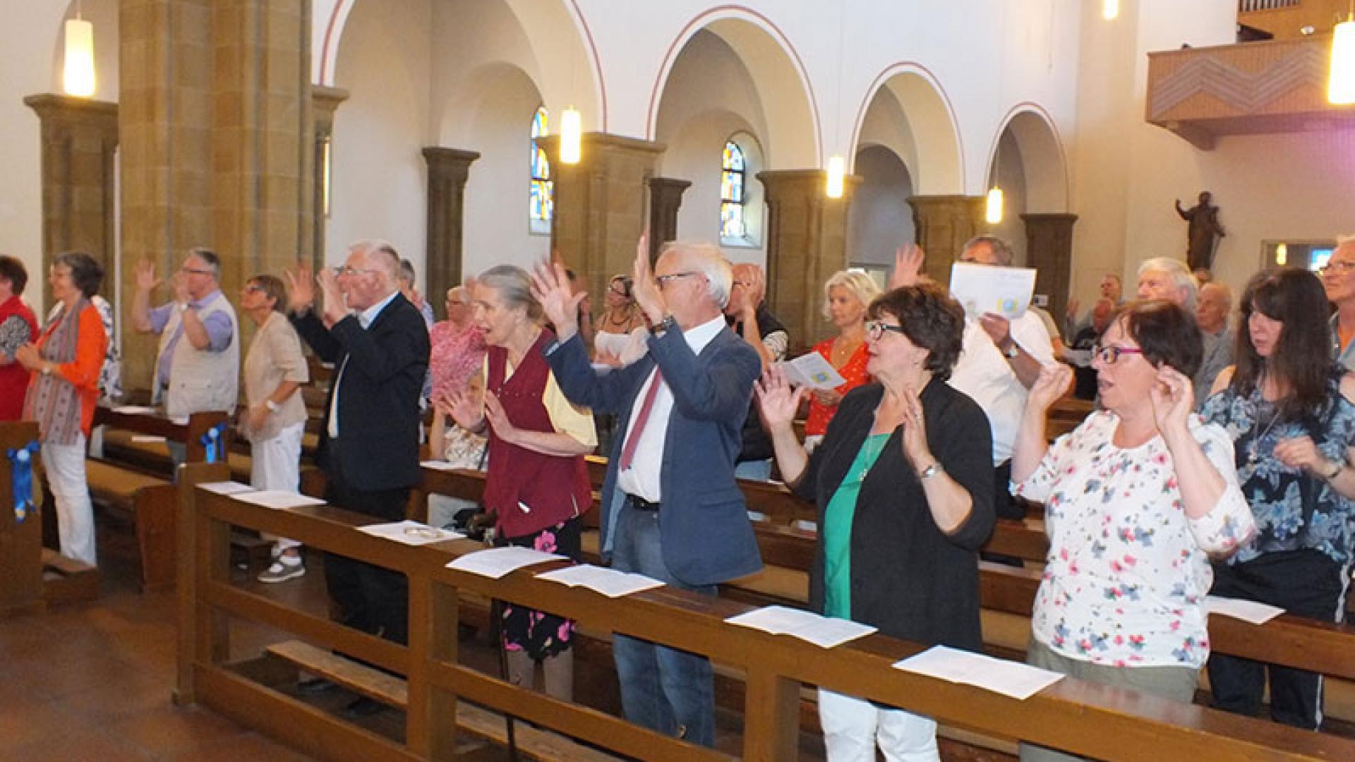 Die Arme gehen nach oben, Hände und Finger bewegen sich in einem rasanten Tempo. Es „erklingt“ ein „Ein Haus voll Glorie schauet“. Durch die Kirche hallen Laute, doch ein Außenstehender wird das bekannte Kirchenlied kaum erkennen. Es wird von Gehörlosen gesungen – in Gebärdensprache. Die Mitglieder des Katholischen Gehörlosenvereins St. Bernward feiern in der gleichnamigen Hildesheimer Kirche mit Generalvikariatsrat Dr. Christian Hennecke die heilige Messe. Hennecke spricht bedächtig, macht immer wieder kurze Pausen. Doch das ist gar nicht notwendig. Die Gebärdendolmetscherin Sabrina Borcherding übersetzt seine Worte in Windeseile in Gebärdensprache, und langsames Sprechen behagt ihr nicht, sagt sie später. Das hängt mit der eigenen Grammatik der Gebärdensprache zusammen, bei der Verben eine besondere Rolle spielen. Und wenn die erst spät im Satz kommen, wird es mit der Übersetzung schwierig.