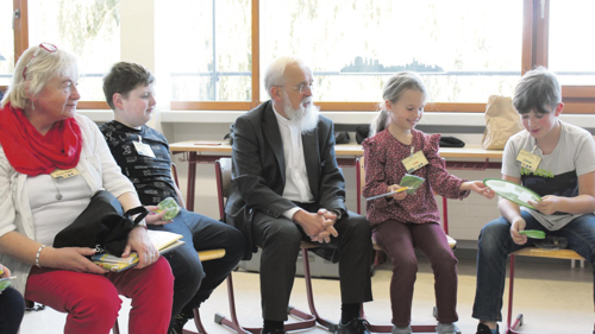 „Was ist denn ein Bischof?“, fragt Lehrerin Carola Ebert die Schülerinnen und Schüler. Denn die dritten und vierten Klassen der Grundschule am Stadtsee in Stendal bekamen an diesem Tag Besuch: Bischof Gerhard Feige und Landesbischof Friedrich Kramer von der Evangelischen Kirche in Mitteldeutschland (EKM) besuchten gemeinsam mit Sachsen-Anhalts Bildungsministerin Eva Feußner (CDU) die Stendaler Schule. Sie wollten sich vor Ort über die Situation des Religionsunterrichts im Land informieren.
