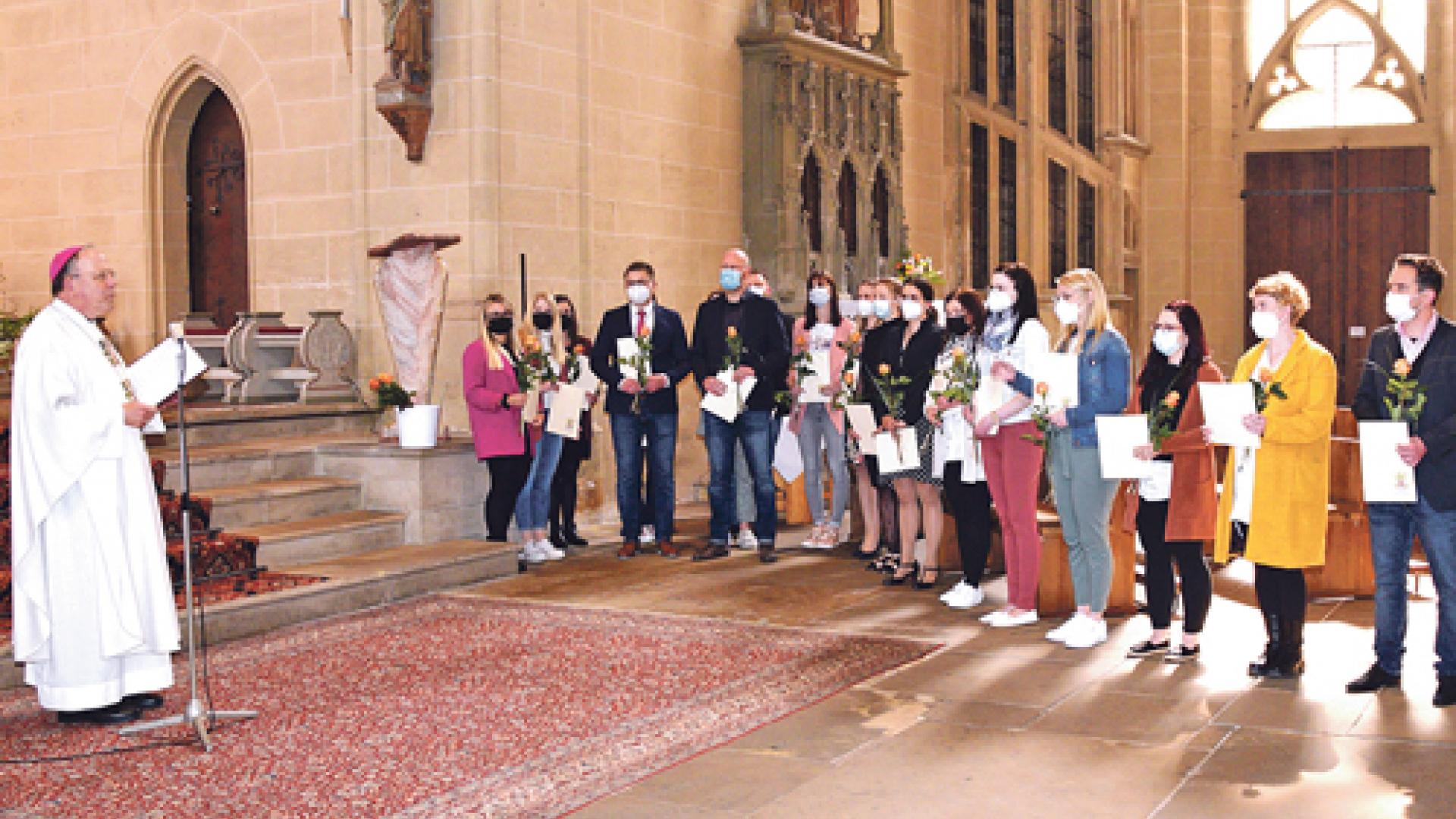 | Bischof Ulrich Neymeyr überreichte in Erfurt jungen Religionslehrern ihre Beauftragungsurkunden. Fotos: Eckhard Pohl |