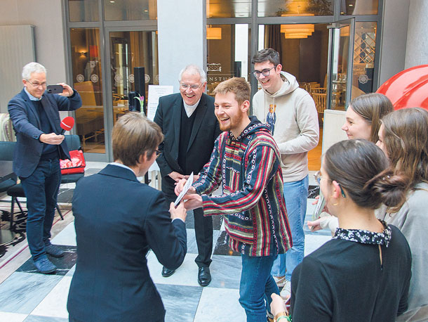 Zu letzteren zählt sich eine Jugendgruppe aus dem Dekanat Chemnitz, die besondere Aufmerksamkeit der Bischöfe genoss. „Wir fühlen uns wahrgenommen und wertgeschätzt“, sagt Clemens Kannegießer, der Beate Gilles, der Generalsekretärin der Deutschen Bischofskonferenz (DBK), eine Petition überreichte. Unter anderem fordern die jungen Katholiken darin Gleichberechtigung für Frauen und für Homosexuelle in der Kirche.