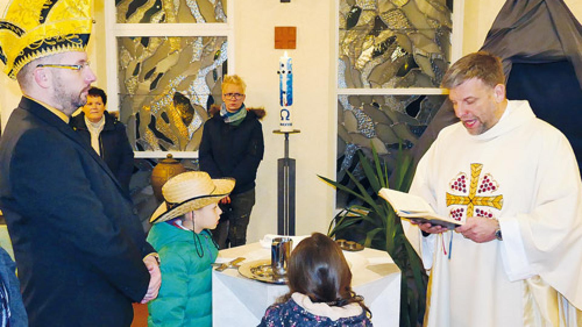 | Eine Taufe in einer Karnevalistenmesse ist eine nicht alltägliche Sache. Für den Täufling ging ein Wunsch in Erfüllung. | Foto: Gregor Mühlhaus |