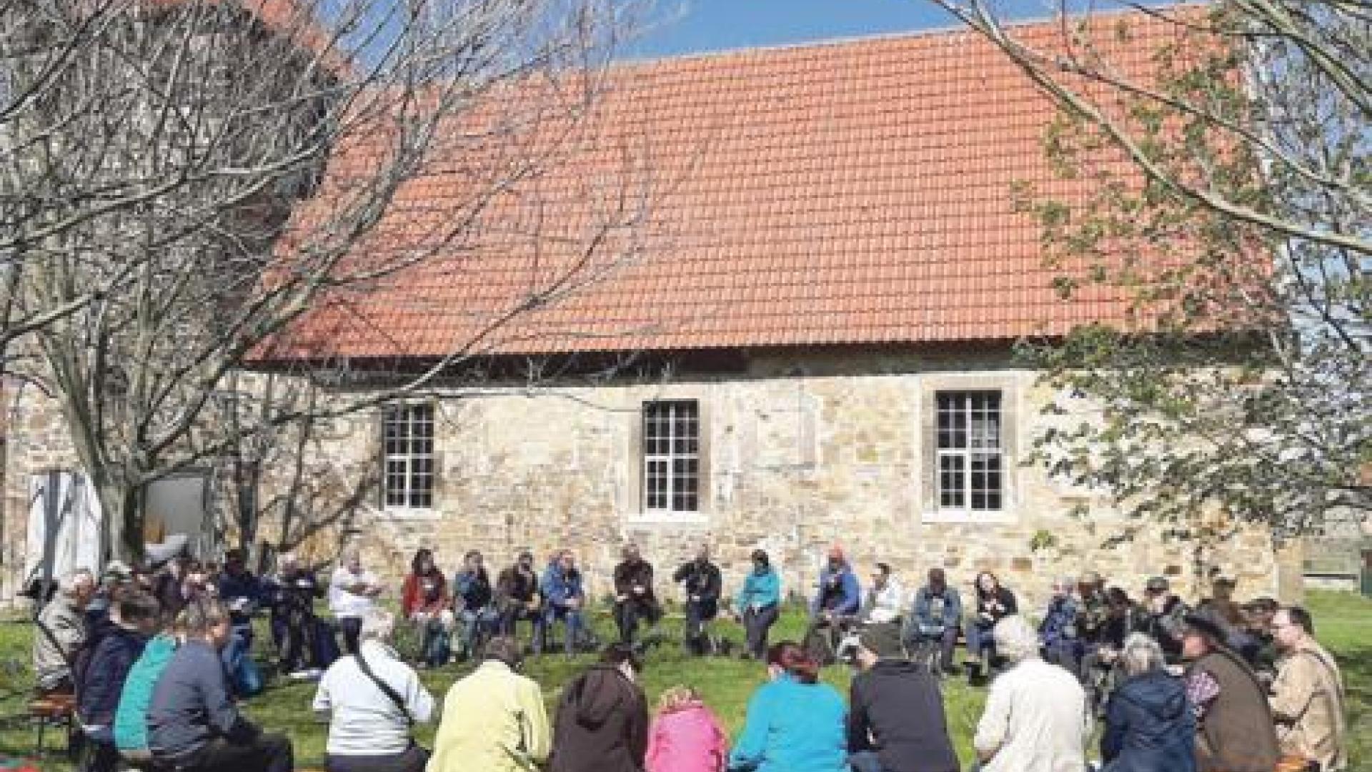 Am 23. April war es dann nach zwei Jahren doch noch soweit. Ab 10 Uhr konnten Antonia Przybilski (Dekanatsreferentin in Wolfsburg) und Paul Koch (Sozialdiakon i.R.) 40 Pilger begrüßen und eine kurze Bibellesung zur Schöpfung vortragen. Anschließend galt es, insgesamt zwölf Kilometer zu wandern. Die erste Station befand sich an einem Wegkreuz kurz vor Morsleben neben einem kleinen Teich. Hier gab es einen geistlichen Impuls zu Schöpfung, Klima und Umwelt von Dirk Preuß, Umwelt- und Nachhaltigkeitsbeauftragter des Bistums Hildesheim. Danach erreichte die Pilgergruppe das Info-Zentrum Morsleben. Swantje Claußen von der Bundesgesellschaft für Endlagerung erzählte von der bewegten Geschichte des Schachtes Morsleben, der 1971 zum Endlager für schwach- und mittelradioaktive Abfälle wurde. Andreas Fox (Bürgerinitiative Morsleben) wies im Anschluss auf diverse Probleme der Endlagerung von Atommüll allgemein und im speziellen am Standort Morsleben hin.