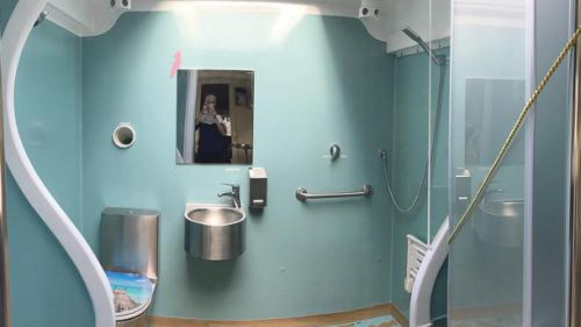 | Der Innenraum des Duschmobils. Foto: Ursula Snay |