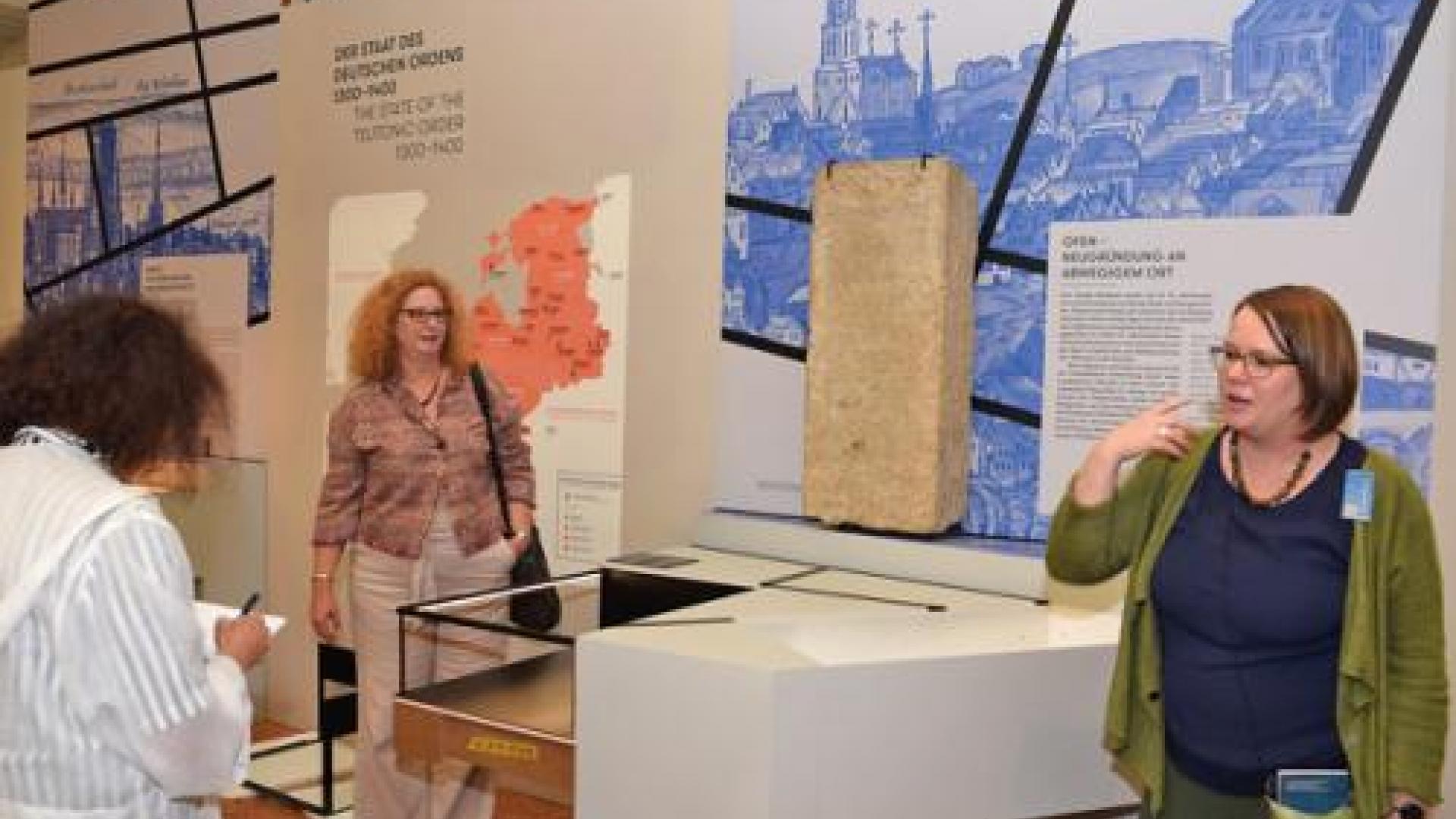 | Kuratorin Christina Link (rechts) erläutert in der Ausstellung, wie das Magdeburger Recht die Entwicklung von Städten wie Danzig, Ofen/Buda oder Kiew förderte. Hinten Direktorin Gabriele Köster. Foto: Eckhard Pohl |