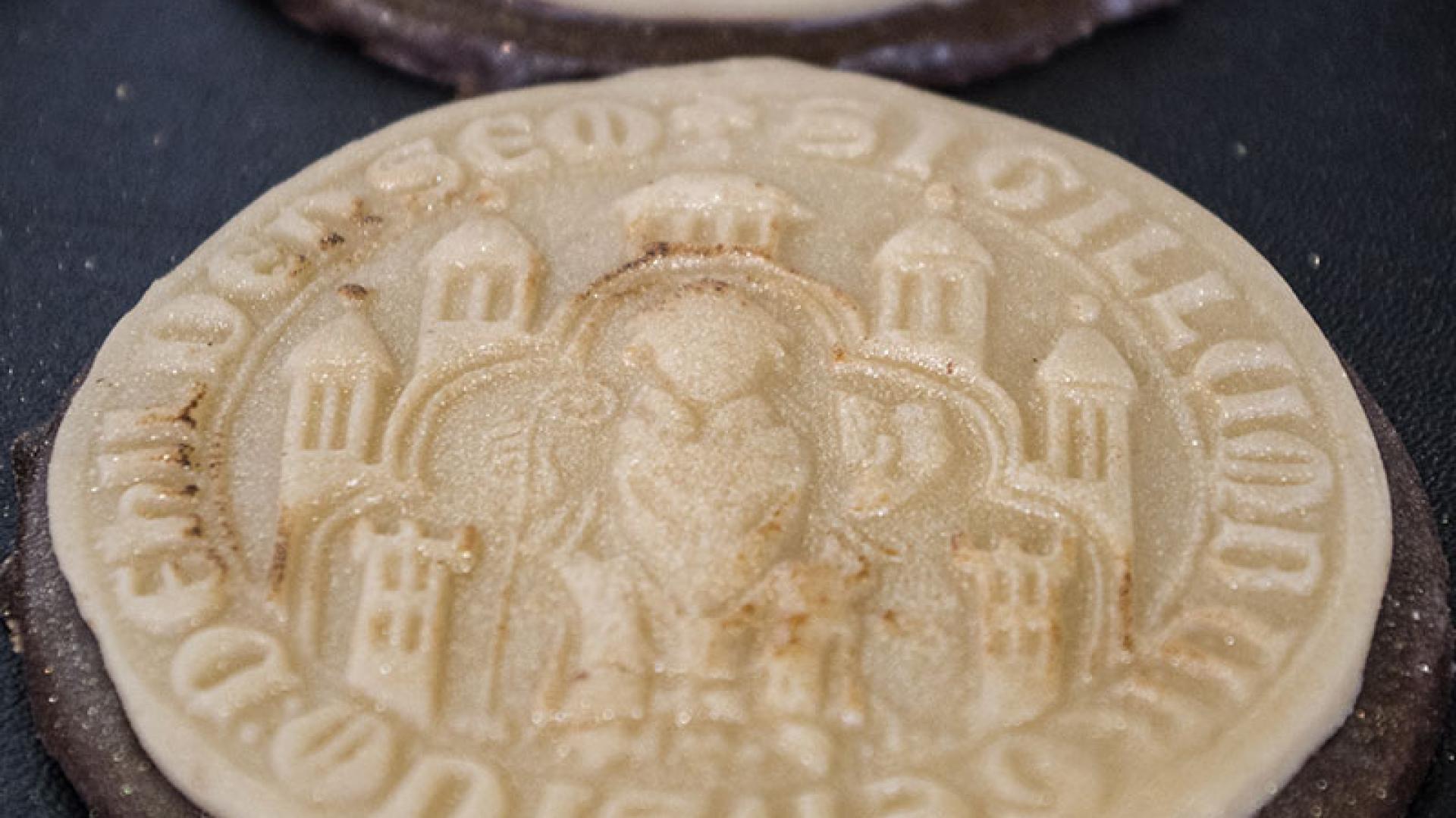 Die Basis bildet ein knuspriger Keks, darauf folgt eine dunkle Schokolade und dann aus Vollmilchschokolade das eigentliche Stadtsiegel Hildesheims, das sich der Rat der Stadt um 1300 gegeben hat. So liegt es jetzt auf der Arbeitsfläche in der Backstube von Godehard Höweling. Doch bis hierhin war es ein komplizierter Prozess.