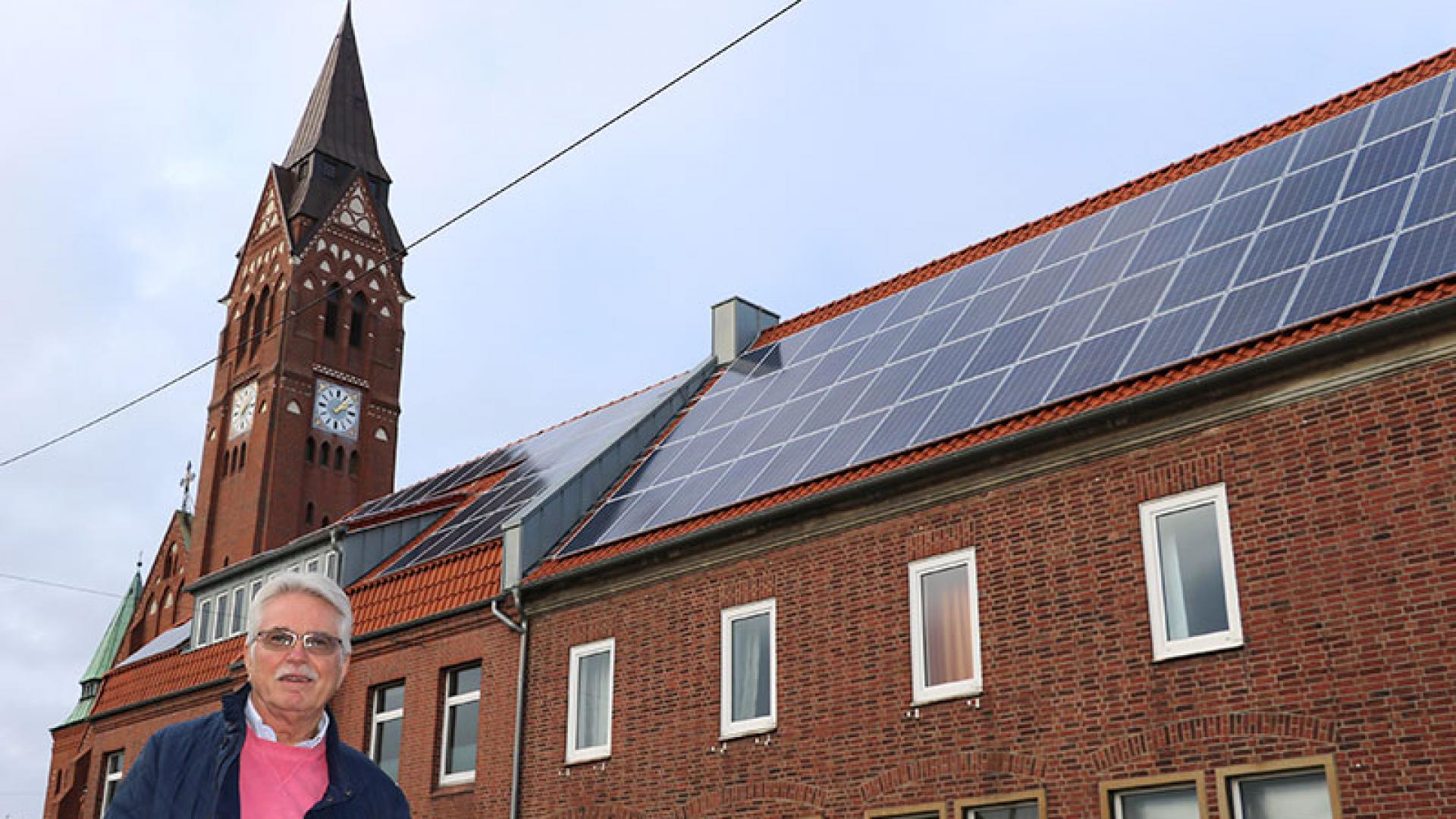 Die Gemeinde Heiliges Herz Jesu in Bremerhaven Lehe hat auf ihrem Kirchdach zwei Photovoltaikanlagen installiert. Damit kann sie nun den Strombedarf des Pfarrhauses decken und sogar noch ins Stromnetz einspeisen. So will die Gemeinde zur Bewahrung der Schöpfung beitragen und den Haushalt entlasten.