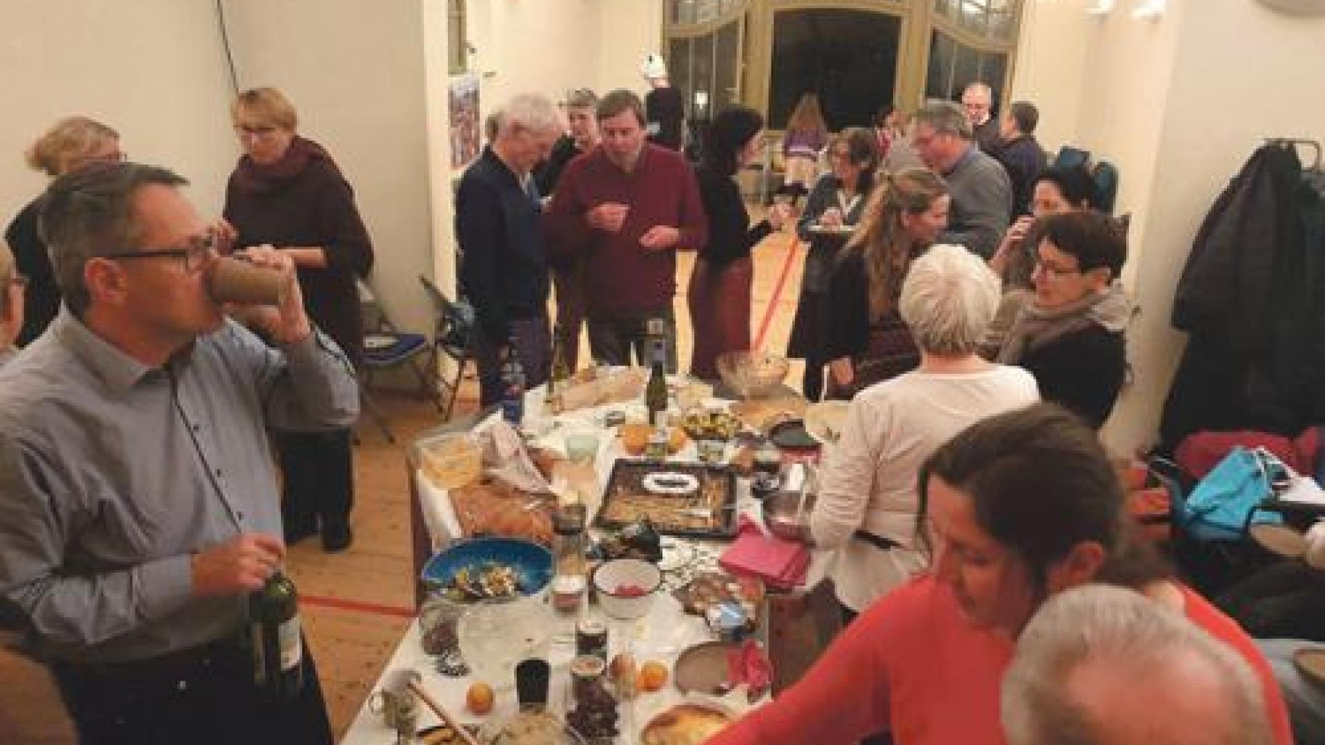 | Das gemeinsame Essen im Anschluss an die geistliche Gemeinschaft ist fester Bestandteil des Abends: Jeder bringt etwas zu essen und Geschirr mit, alles wird geteilt und es ensteht schnell ein reger Austausch miteinander. Fotos: Ruth Weinhold-Heße |