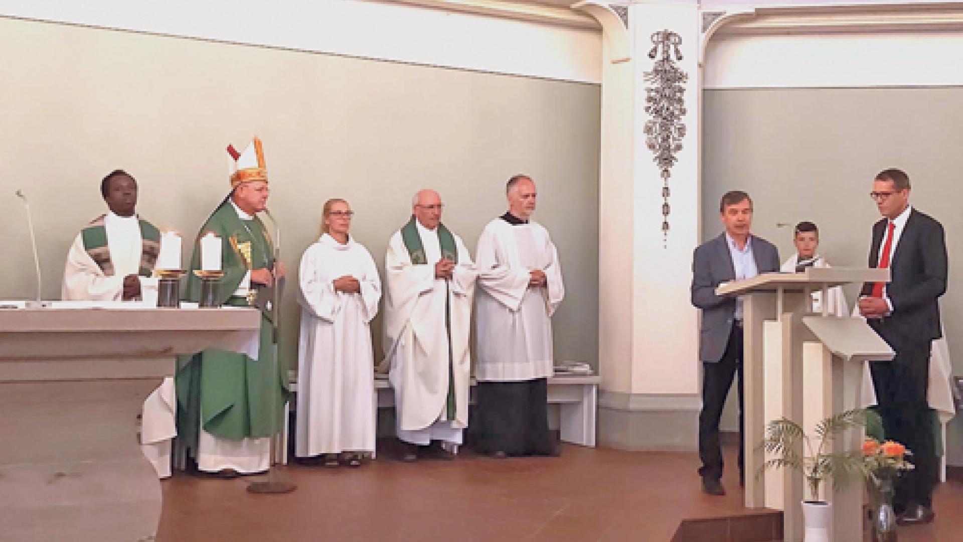 „Wir lassen uns auf das Experiment ein und versuchen, die Pfarrei Arnstadt personell anders als bisher auszurichten und im Gemeindeleben neue Wege zu beschreiten.“ Was bisher Absichtserklärung der Beteiligten war, hat nun konkret begonnen: Gemeindereferentin Claudia Wanierke, Hochschulseelsorger Markus Schnauß und der ruandische Priester Jean François Uwimana sind von Bischof Ulrich Neymeyr am 27. August bei einem Gottesdienst in Arnstadt mit der Leitung und geistlichen Begleitung der Pfarrei St. Elisabeth beauftragt worden. Zuvor hatten Kirchenvorstand Henrik Stutzig, er wohnt in Arnstadt, und Pfarreirats-Vorsitzender Jürgen Müller, Ilmenau, den Bischof in der Liturgie im Namen der Pfarreimitglieder darum gebeten.