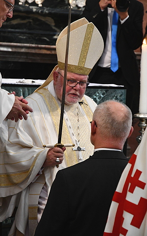 Neben dem Ritterschlag mit dem Schwert, nur für Ritter, erhielt er auch das Ordenskreuz, den Ordensmantel und das Barett. „Die Damen tragen einen schwarzen Mantel und statt des Baretts einen schwarzen Schleier“, erläutert Oliver Cerza, Pressesprecher des Ordens, „als Zeichen, dass die Mitglieder des päpstlichen Ordens jederzeit zu einer Audienz beim Papst bereit sind. Deswegen tragen die Männer unter ihrem Mantel auch einen schwarzen Frack.“